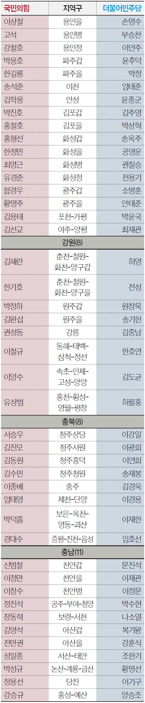 카테고리 없음 [확인]22대 총선 대진표, 예상의석수, 의석수계산기 바로가기 by 머니봑스 2024. 3. 21. 반응형 4월 10일 치러지는 제22대 국회의원 선거 21일 후보자 등록을 시작으로 카운트다운에 들어간다. 후보자 등록은 22일까지 이틀간 진행된다. 공식 선거운동은 28일 막이 올라 투표 전날인 4월 9일까지 13일간 이어진다. 사전투표는 4월 5~6일 양일 간이다. 20일 현재 지역구 공천이 확정된 각 당의 후보자 명단을 싣는다. *야권단일 후보의 경우 더불어민주당 공천 부분에 표기 22대 총선 바로가기 의석수 계산기 바로가기 ☞거소,선상투표신청 바로가기☜ 4.10 총선 4.10_총선 4.10_총선 4.10_총선 4. 10_총선 4.10_총선 반응형 공유하기 게시글 관리 MoneyBox